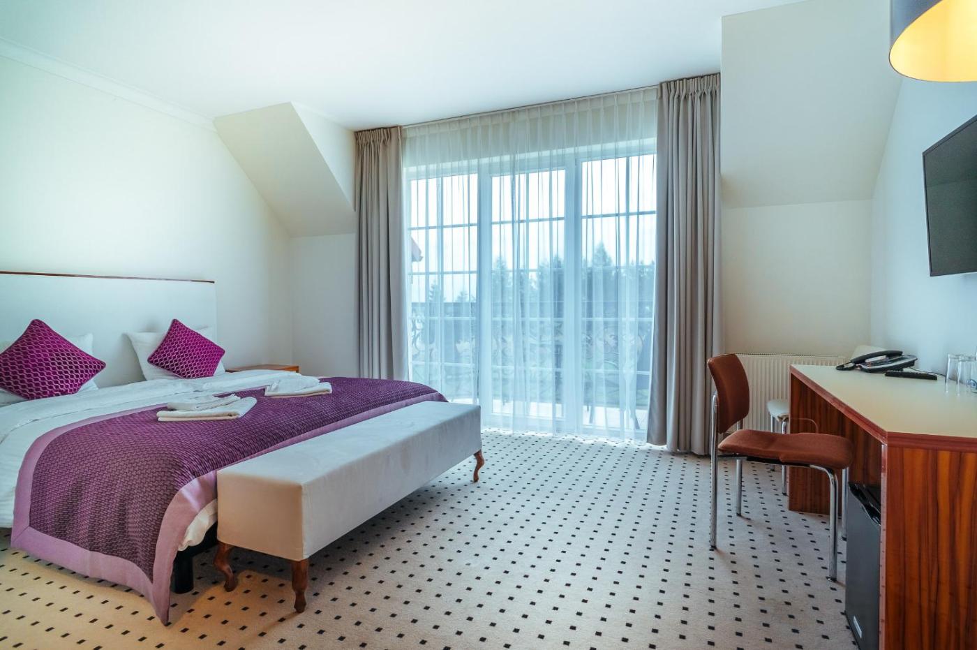 Pokój Dwuosobowy typu Deluxe z wanną. Jest to pokój dwuosobowy z basenem z widokiem na okolicę. Ten przestronny, klimatyzowany pokój dwuosobowy ma dźwiękoszczelne ściany. Do dyspozycji Gości jest łazienka z kabiną prysznicową oraz balkon z widokiem na ogród. W tej opcji zakwaterowania zapewniono 2 łóżka. Pokój Dwuosobowy - 3 osobowy. Powierzchnia pokoju ok.: 27 mkw.