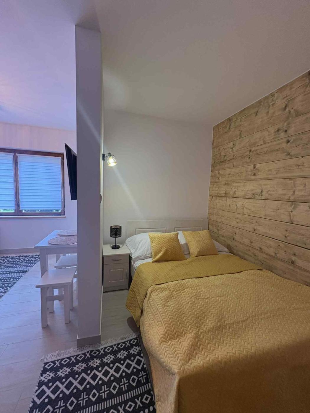Apartament typu studio. Boasting a private entrance, this apartment features 1 living room, 1 separate bedroom and 1 bathroom with a shower and a hairdryer. The well-fitted kitchen has a stovetop, a refrigerator, an oven and a microwave. The apartment features tiled floors, a seating area with a flat-screen TV, a wardrobe, an electric kettle as well as garden views. The unit has 2 beds. Apartament - 4 osobowy. Powierzchnia pokoju ok.: 24 mkw.