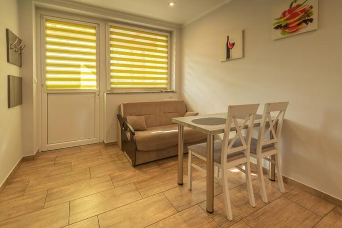 Apartament z 1 sypialnią. Featuring a private entrance, this apartment is comprised of 1 living room, 1 separate bedroom and 1 bathroom with a shower and a hairdryer. Guests will find a stovetop, a refrigerator, kitchenware and an electric kettle in the well-equipped kitchen. The apartment also has a barbecue. Boasting a terrace with garden views, this apartment also offers a dining area and a flat-screen TV with cable channels. The unit offers 2 beds. Apartament - 3 osobowy. Powierzchnia pokoju ok.: 25 mkw.