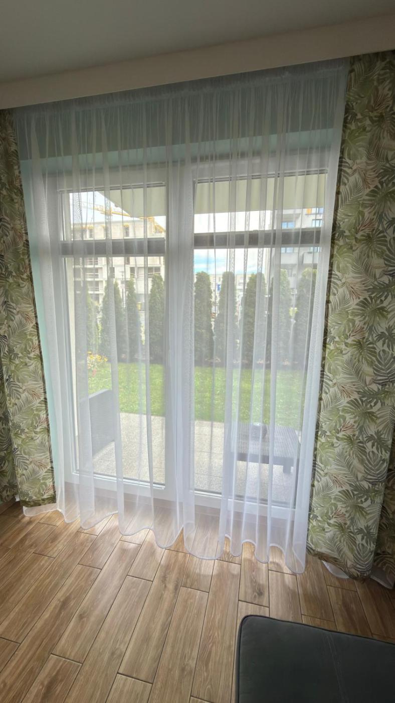 Apartament z 1 sypialnią. This apartment features 1 living room, 1 separate bedroom and 1 bathroom with a walk-in shower and a hairdryer. The well-equipped kitchen has a stovetop, a refrigerator, a dishwasher and kitchenware. Boasting a terrace with garden views, this apartment also features a washing machine and a flat-screen TV with streaming services. The unit has 2 beds. Apartament - 3 osobowy. Powierzchnia pokoju ok.: 35 mkw.