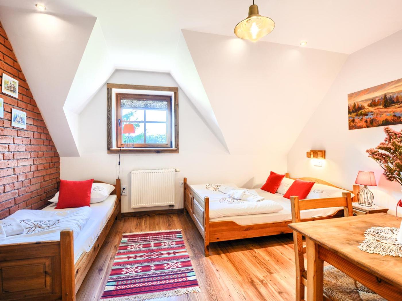 Pokój rodzinny z łazienką. Guests will have a special experience as the family room offers a pool with a view. The family room provides a coffee machine and a wardrobe, as well as a private bathroom featuring a shower. The family room features parquet floors and features a high chair for children, heating and garden views. The unit offers 4 beds. Rodzinny - 6 osobowy. Powierzchnia pokoju ok.: 25 mkw. ;