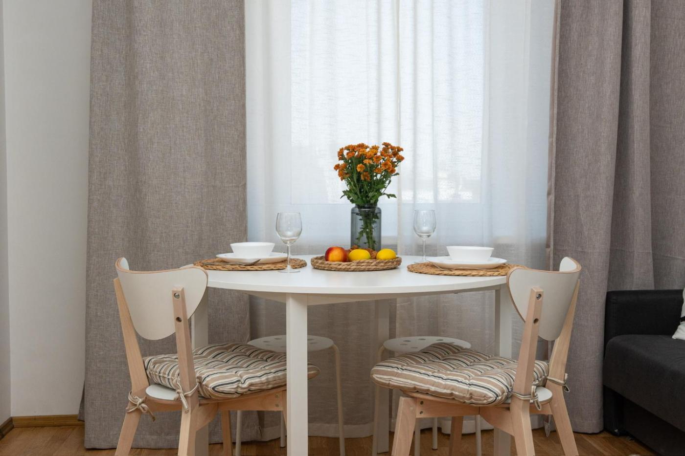 Apartament z 1 sypialnią. This apartment comes with 1 living room, 1 separate bedroom and 1 bathroom with a shower and a hairdryer. Guests can make meals in the kitchen that features a stovetop, a refrigerator, a dishwasher and kitchenware. The apartment features a washing machine, soundproof walls, a minibar, a flat-screen TV with streaming services, as well as city views. The unit has 3 beds. Apartament - 3 osobowy. Powierzchnia pokoju ok.: 35 mkw.